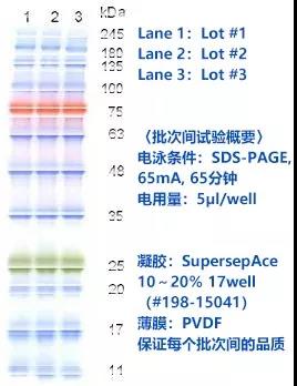 ● 各条带的分子量(kDa): 245, 180, 135, 100, 75, 63, 48, 35, 25, 20, 17, 11