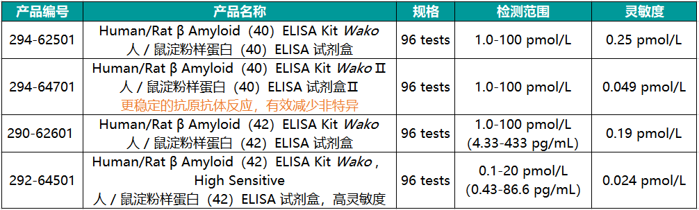 阿尔茨海默病(Alzheimer’s Disease, AD),俗称老年痴呆症,其特征是在大脑神经细胞中存在老年斑(SPs)和神经元纤维缠结(NFT)。FUJIFILM Wako推出系列ELISA试剂盒,可以对阿尔茨海默病中的各种生物标记物进行定量检测。