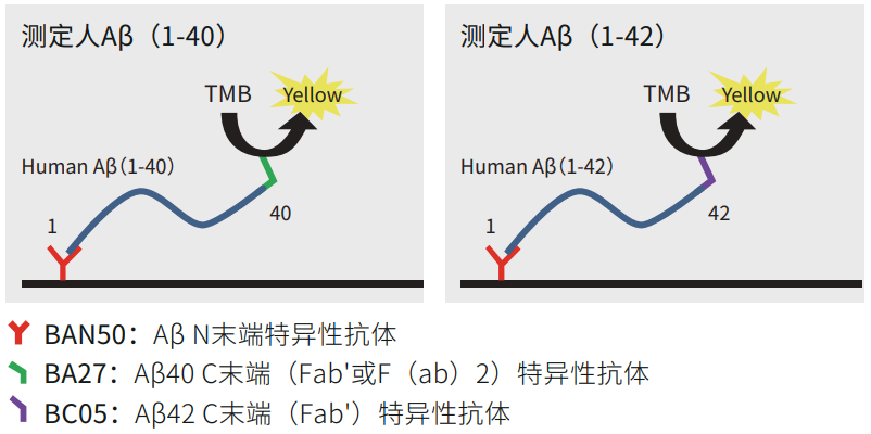 另可提供四种单独的抗体:BAN50(识别Aβ N末端)、BNT77(识别Aβ中部)、BA27(识别Aβ40 C末端)、BC05(识别Aβ42 C末端),用于WB或IHC。