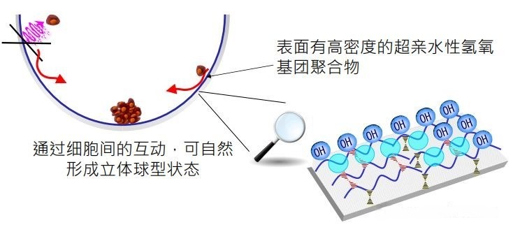 Tips:  本产品表面经过特殊安全无害超亲水性聚合物处理,可避免细胞附着在容器表面,进而自发性聚集于中央形成球状细胞。