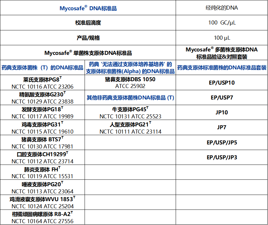 • Mycosafe® 支原体DNA标准品