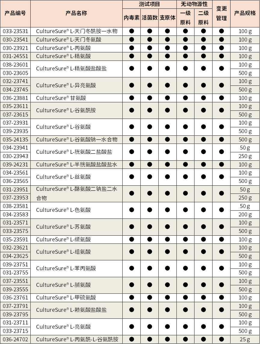 ※ 因CultureSure® DMSO的物理性质无法进行支原体测试,所以无法保证支原体阴性。但可以使用0.1 μm的过滤器去除支原体。