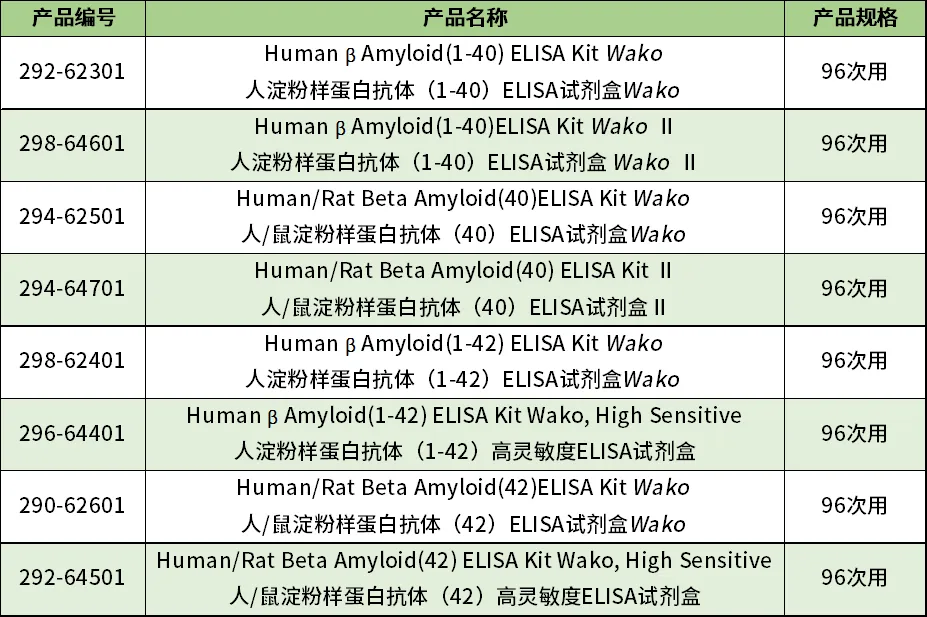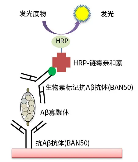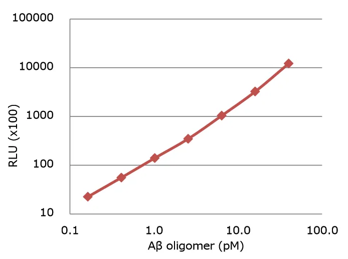 本系列采取双抗体夹心法ELISA,使用抗Aβ抗体(BAN50)作为捕获抗体和检测抗体,与1~8-mer几乎不发生反应,与9-mer以上的Aβ寡聚体则发生特异性反应。使用带有16个抗Aβ抗体(BAN50的抗体识别序列的16-mer MAP肽作为标准品。