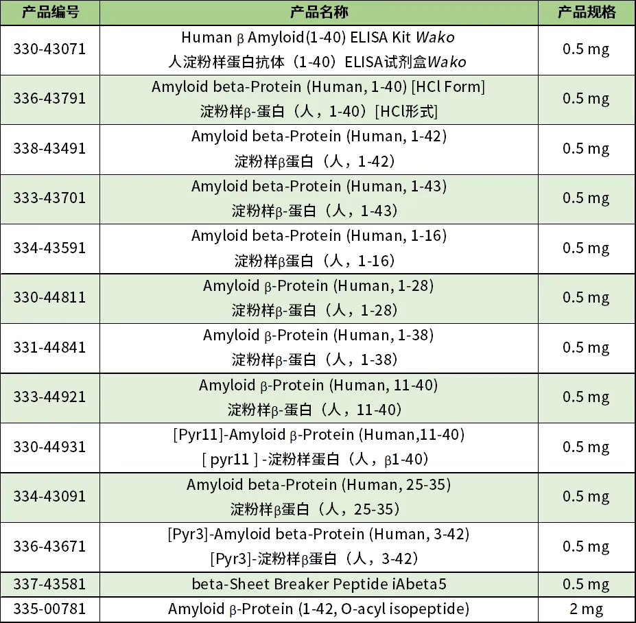 Aβ寡聚体中,按照分子量的大小,可以分成低分子量的Aβ寡聚体(Low-n 寡聚体)和高分子的Aβ寡聚体(ADDL、Aβ*56、原纤维(Profibril))。
