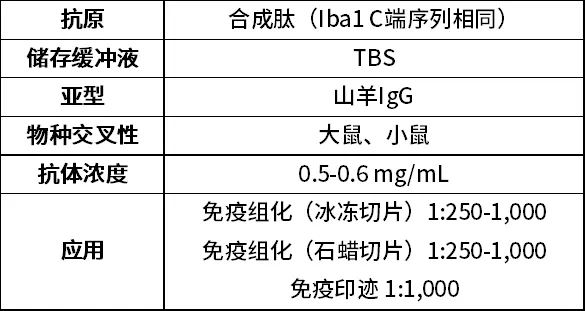 Iba1是一种约17 kDa的蛋白,在神经系统小胶质细胞中特异性表达,经常被用作小胶质细胞标记物。本产品是识别Iba1的山羊多克隆抗体。