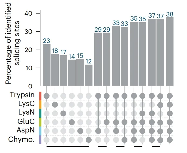 图2. 所有蛋白酶组合对可变剪接位点的鉴定数