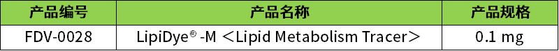 ● 作为游离脂肪酸的LipiDye®-M通过脂肪酸转运蛋白进入细胞后,在细胞内可转化为酰基辅酶 A、甘油二酯(DAG)、甘油三酯(TAG)、磷脂及β脂肪酸氧化产物。