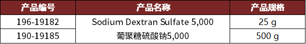 葡聚糖硫酸钠,是一种由葡萄糖聚合,经硫酸化后所得的化合物。本产品的平均分子量约为5000(分子量范围:1000-9000),是聚阴离子物质。在细胞培养中,本品可通过改变细胞表面的电荷,来促使单个细胞悬浮,防止细胞结团,是一种被广泛用于重组蛋白生产的抗结团剂。