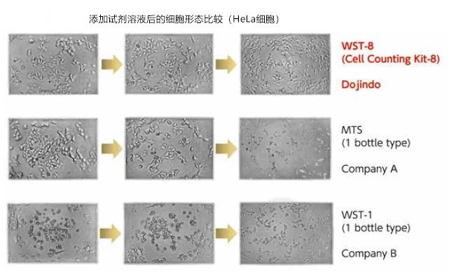 Cell Counting Kit-8采用新型四唑盐「WST-8」。由于四唑盐和甲臜都是高度水溶性的,因此不需要像MTT测定那样的溶解操作。