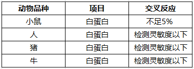 交叉反应是500 μg/mL时的检测结果(FCS除外)