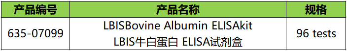 已验证可以检测样品中掺入的牛血清白蛋白,以及生产过程残留在终产品中的牛血清白蛋白杂质。