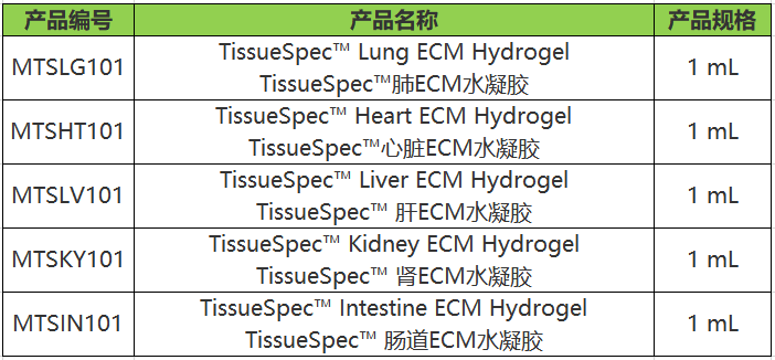 TissueSpec™水凝胶是去除了猪的各个内脏/组织中的细胞与核酸成分的脱细胞化特异性细胞外基质。