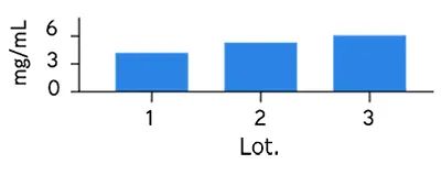 (c)对复数批次间的TissueSpec™ 肝ECM的胶原含量进行定量,结果显示各批次间的数值具有一致性。