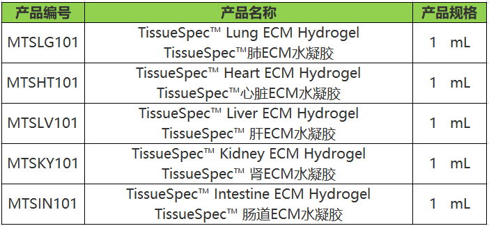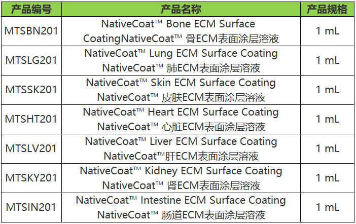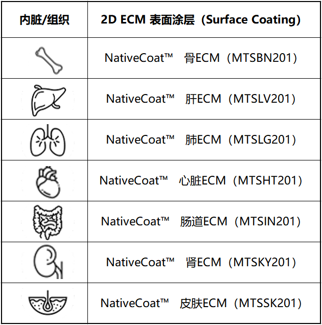 ● 可提供骨、心脏、肠道、肾脏、肝、肺、皮肤组织细胞来源的ECM系列产品