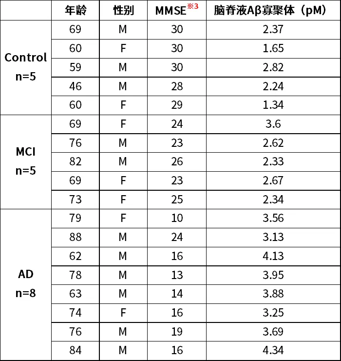 ※3:MMSE score:认知功能诊断问诊检查的分数,30-28分:正常;27-24分:怀疑有轻度认知障碍;23分以下:怀疑严重认知症