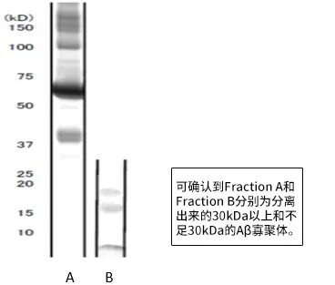 8聚体以下(<30 kDa)的Fraction B几乎检测不到信号;9聚体以上(≥30 kDa)的Fraction A则检测到强烈的信号。